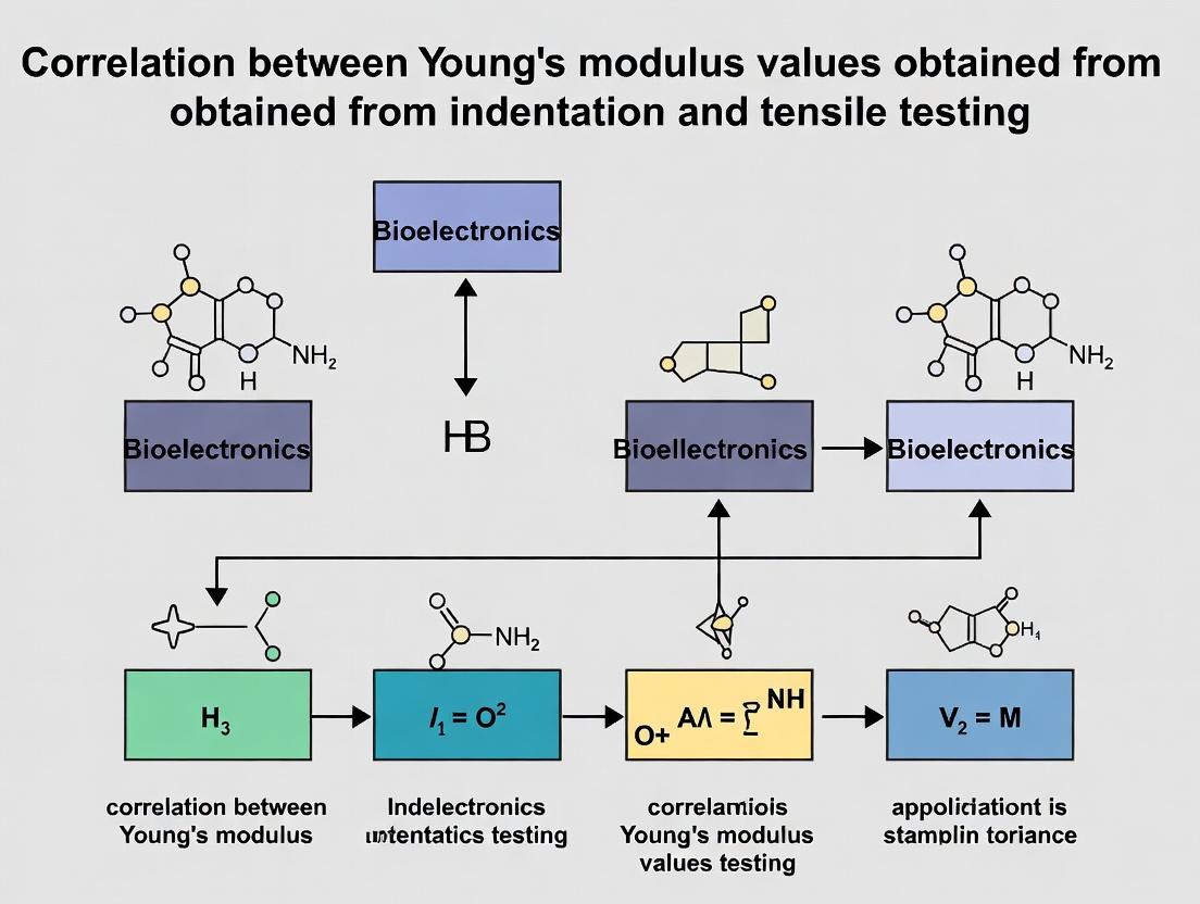 Correlating Young's modulus from indentation and tensile testing is not merely an academic exercise but a practical necessity for reliable biomaterial design and drug product development. A strong correlation hinges on understanding foundational principles, meticulous methodology, proactive troubleshooting of scale and rate effects, and rigorous validation. For researchers, the key takeaway is that nanoindentation offers invaluable localized property mapping but must be contextualized with bulk tensile data where applicable. Future directions include the development of standardized multi-scale testing protocols and machine learning models to predict tensile properties from high-throughput indentation data. Ultimately, mastering this correlation accelerates the translation of novel materials from the lab bench to clinical and pharmaceutical applications with well-characterized and predictable mechanical performance.